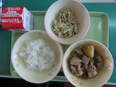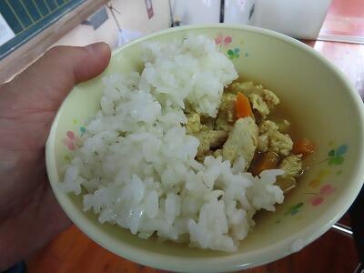 【親子丼です!(学校あるある!ご飯をかけるので、具がかくれてしまいました・・)】