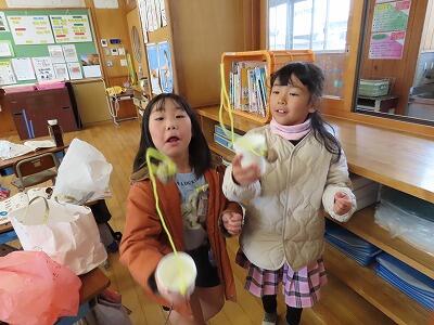 秋を感じつつ、手作りおもちゃを使って大いに楽しんでいた1年生でした。