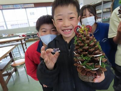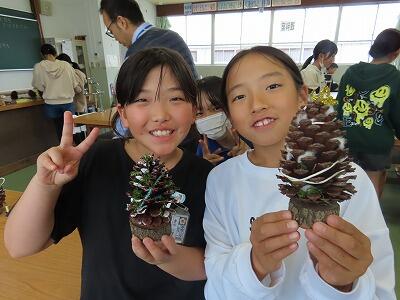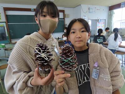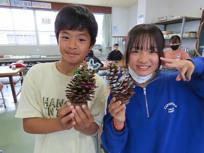 この後、子どもたちもこの松ぼっくりを使った作品づくりに挑戦します!作品の完成を楽しみにしています。