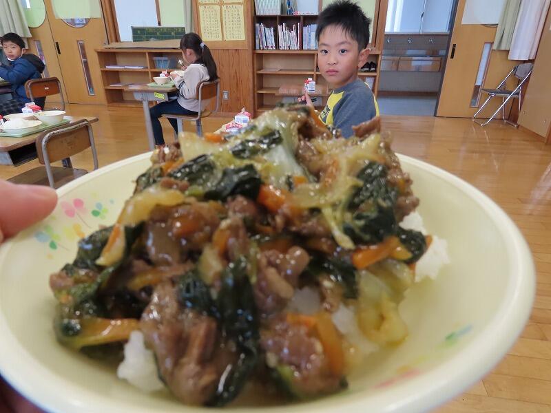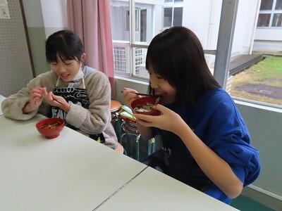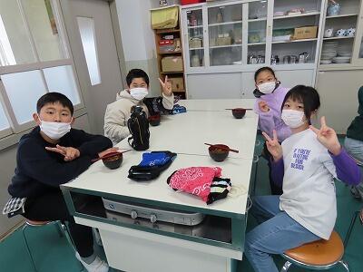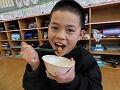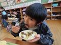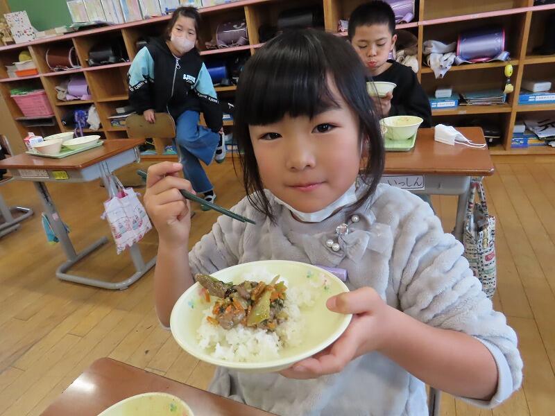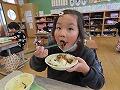それでは、2学期最後の給食の様子、2年1組からお届けします。