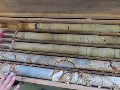 都農小新校舎建設(H25完成)の際に行ったボーリング調査で採取した土です。