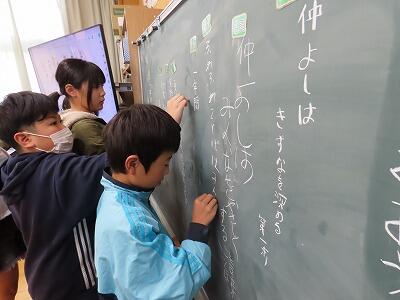 【2年生「たすけ合い 声かけあって ともだちに」】