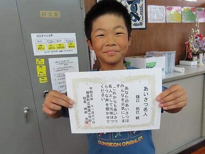 今回選考基準は、特に「いつでも・どこでも・だれにでも」あいさつのできる子どもたちです。