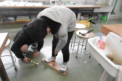 ていねいに・・安全に・・気を付けて、彫刻刀で彫っていきます。】