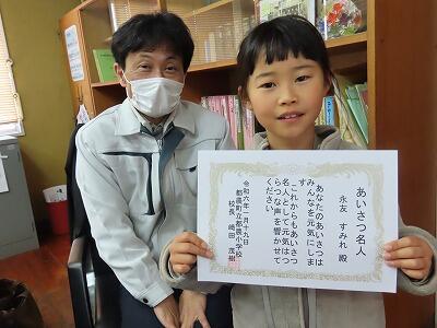 寒さに負けず、元気いっぱいあいさつを続けている子どもたちです。