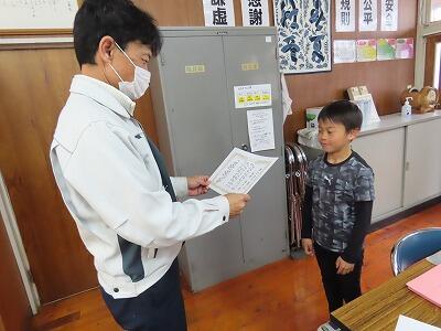 昨日、学校栄養職員の川添先生に来校いただき、贈呈式を行いました。