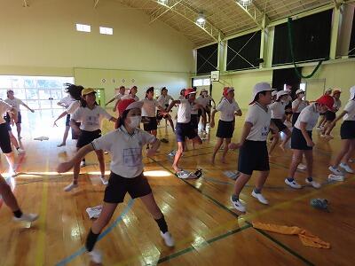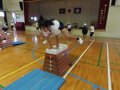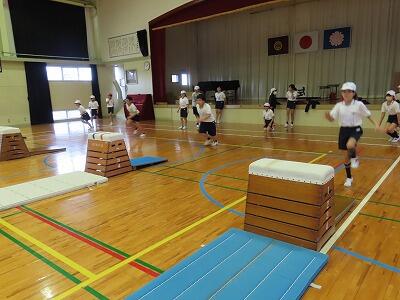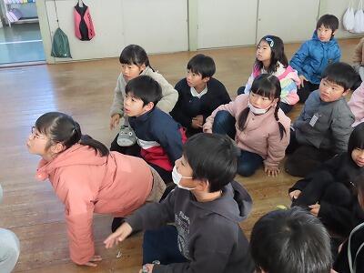 寒い午前中、1年生が元気にぴょんぴょん飛び跳ねていました。