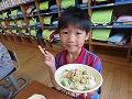 【白いワイシャツに汁がとばないように気を付けて、いただきま~す!】