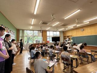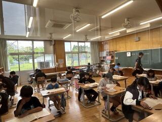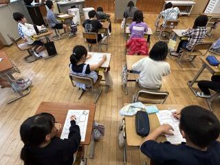 1年生が正しいろう下歩行の練習をしている頃、6年生は「令和6年度全国学力・学習状況調査」(全国学力テスト)を受けていました。