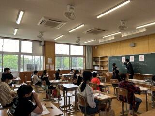 授業参観の後は、学級役員を決め、PTA総会、学級懇談会が行われました。本校のPTA総会は、図書室と各教室をZoomでつなぎ、配信する方法で行いました。