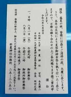 町内の小中学校の校長は、毎年、都農神社より御発輿祭の案内をいただきます。
