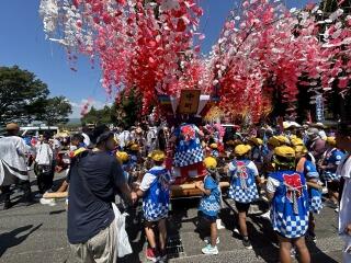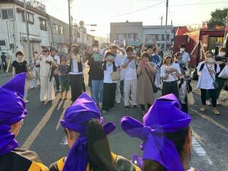 学校に戻ろうとしていると4町子ども太鼓台を発見し、急いで駆け寄り、声をかけてきました。