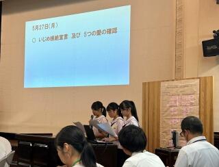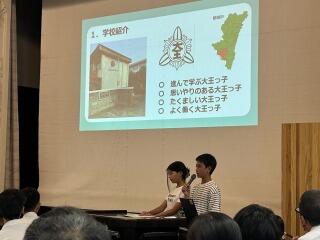 本校は、本年度宮崎県の「いじめの未然防止に関する取組推進校」になっており、この日、代表児童2名が学校の取組を発表するため、このサミットに参加しました。