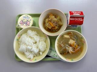 給食のマーボー豆腐は具だくさんでとても美味しいです!!デザートのフルーツ杏仁で後口もさっぱりです。