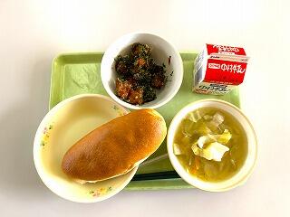 パンを一口サイズにちぎった時、あれ?いつもと違う…と思い、献立を見ると「米粉パン」とあり、納得しました。