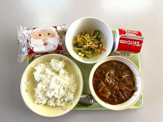 今日の給食を、町民の皆様からのクリスマスプレゼントとして味わいながら、感謝しながら、笑顔で食べる子どもたちの姿を思い浮かべながら、今日もおいしくいただきました。ごちそうさまでした!!