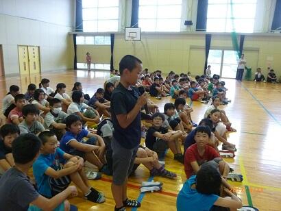「青島少年自然の家」での宿泊学習で学んだ「規律」「協働」「友愛」「奉仕」について堂々と発表し始めました。