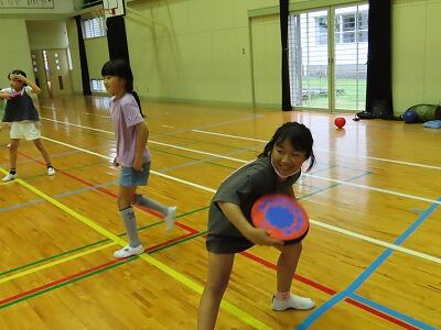 【ドッジビーの練習をしていました‥(昭和の時代にはなかった代物です。)】