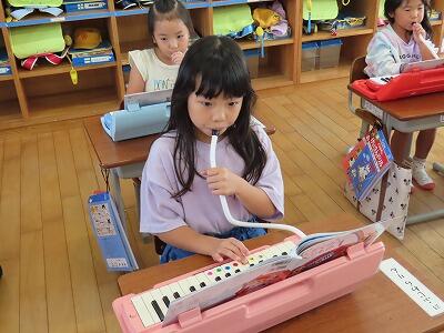 鍵盤ハーモニカで「ドレミ・・」の練習。