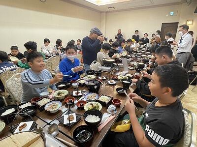 【朝食の様子からです。(部屋の片づけを終わらせ、1番に会場に到着した班です。えらい!)】