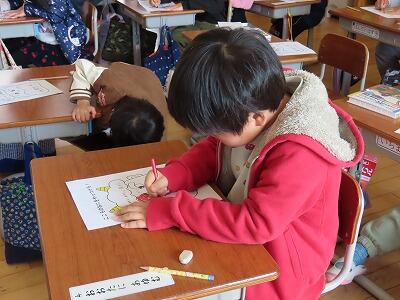 寒い午前中、1年生が元気にぴょんぴょん飛び跳ねていました。