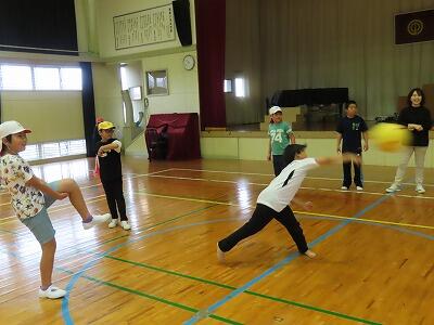 【ドッジボール・・。教室に戻ってからは3チームに分かれます。】