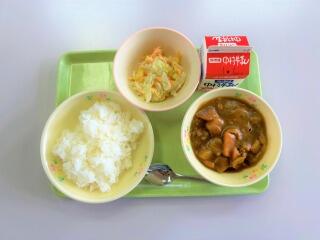 今日のサラダに使用しているキャベツも3回ずつ洗っているのですが、丸ごと洗うわけではなく、キャベツの葉をはいで、1枚の葉っぱにつき3回ずつ洗っているのですよ。丁寧な作業をして給食を作ってくださる調理員さんに感謝して、給食をいただきましょう。