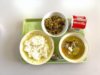 一目見て、いつもとは違う感じのたけのこだなぁと思って食べましたが、味はもちろん問題ないし、シャキシャキとした食感もよかったです。食べながら学べる給食って、やっぱりいいですね。今日もおいしくいただきました。