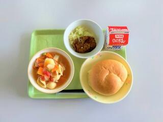 今日は、本校は1~5年生が遠足や社会見学のため、校内には6年生と一部の教職員だけとなりました。ただ、ハンバーガースタイルのメニューだったので、いつもとは違う気分で給食を食べることができました。