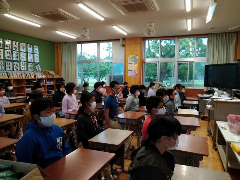 感染症拡大防止のために、今日の全校集会は予定を変更して放送集会としました。2人の先生の話と表彰披露の約20分の内容でしたが、みんな一生懸命聞いたり、元気のよいあいさつをしたりと頑張っていました。特に6年生の聞く態度はとてもすばらしく、思わず写真におさめました。さすがです!