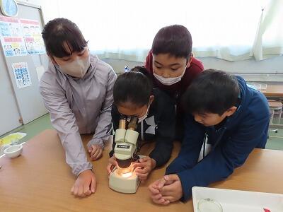 【双眼実態顕微鏡でながめて確かめます。】