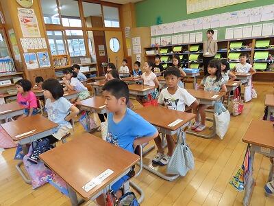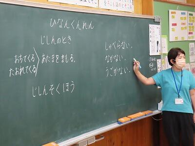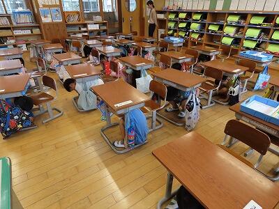 今回の訓練は、余震想定・けが人想定訓練という初の試みでしたが、児童は、放送をよく聞き、真剣な表情で訓練に臨んでいました。