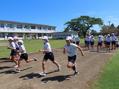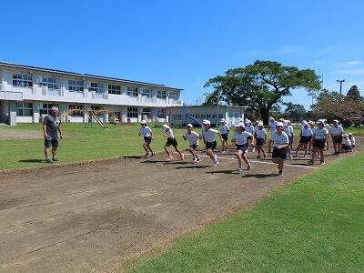 水分補給を十分に行いながら、徒競争の練習(70%の力で)をしていました。