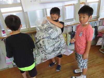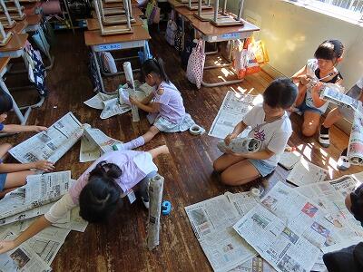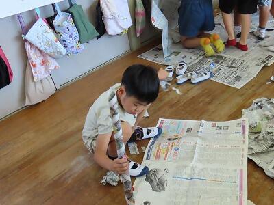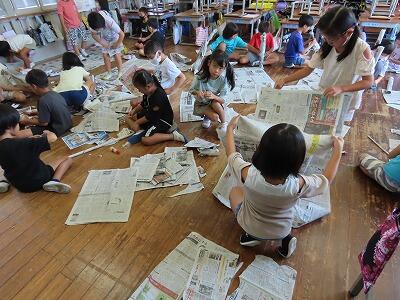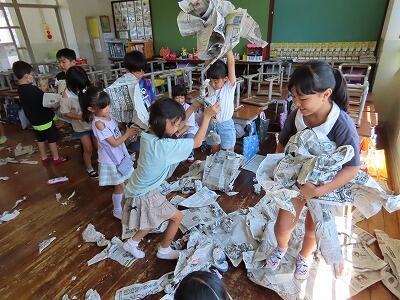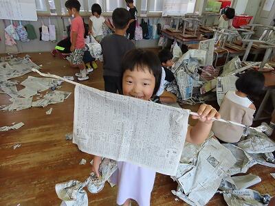 めあて「新聞紙を使って、いろいろな物を作ってみよう」