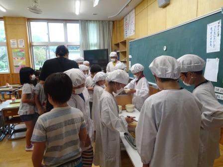初日は、ゆっくり慎重に、5年生がお手本で示してくれた量と同じくらいになるように気を付けながら注いでいました。5年生が優しく教えてくれるので、2年生も安心して動くことができました。