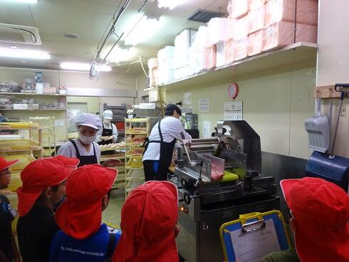 3年生は、『パントリーけいすけ』に見学に行きました。けいすけでは、普段見ることのできないスーパーマーケットの裏側をたくさん見させていただきました。精肉、鮮魚、青果、総菜など、様々な加工や販売準備を行う場所では、肉を切断する機械やシャリをつくる機械、商品にラップをする機械など、たくさんの機械が使われており、子どもたちは驚きの声を上げていました。