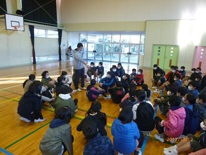 「先生のお話」の中心は、冬休みの過ごし方でした。「早ね・早おき・朝ごはん」を心がけること、勉強をがんばること、読書をすること、運動をすること、危ないことはしないことを、みんなで確認しました。