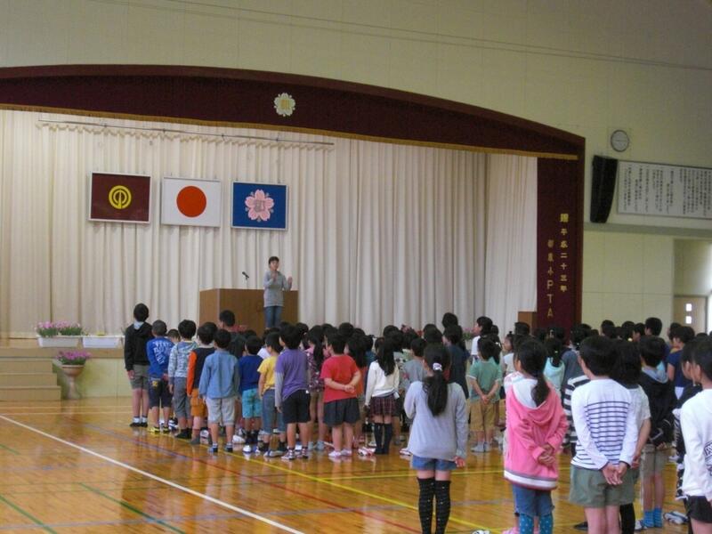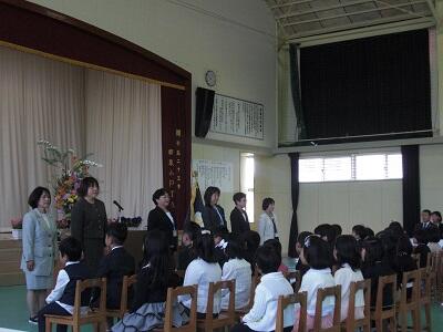 新任式が行われました。今年度は10名の先生方が都農小学校にいらっしゃいました。子どもたちは、新しくいらっしゃった先生方に大きな声であいさつをしたり、先生方の話を興味津々、真剣に聞いたりしていました。その後、全校児童を代表して、6年生の児童が歓迎の言葉を述べました。
