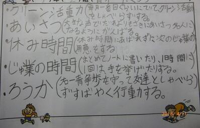 新学期だからこそ気持ちを新たに、また徹底して取り組んでほしいという思いを込めて、各担当の先生から、学習の取り組み方についてのお話や交通安全についてのお話、規則正しい生活リズムについての話などがありました。