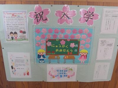 朝、保護者の方々に手を引かれ、41名の1年生が登校してきました。登校した1年生は、6年生のお兄さん、お姉さんに名札とリボンを付けてもらい、お兄さんお姉さんと一緒に教室へといきました。