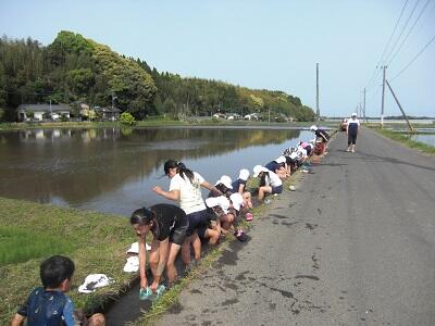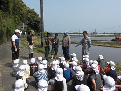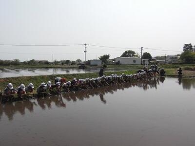 5年生の子どもたちが、JA尾鈴青年部の方々の御指導の下、田植えを行いました。