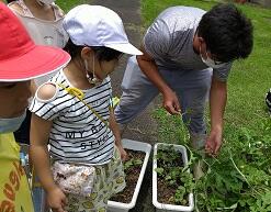 子どもたちは今日も一生懸命、水やりをがんばっています。大きくなあれ!