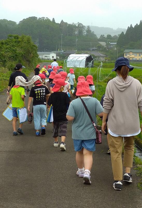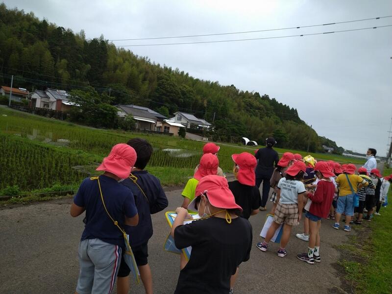 今日、3年生は町たんけんをしました。あいにくの天気で予定のルートをすべて回ることはできませんでしたが、近くの田畑を見ながら、気づいたところをメモしていました。途中で農家の方がわざわざ仕事を止めて来ていただき、農作物について教えていただき、地域の方の温かさも感じました。