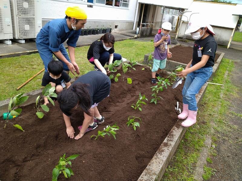 昨日、雨間をぬって、2年生が一人一鉢でミニトマトを、菜園にピーマンとなすを植えました。学校用務の先生にアドバイスをもらいながら、きれいに植えることができました。先週末の放課後、担任の先生は畝づくりに汗を流していました。こういう準備があって見事な菜園になりました。はやく大きくなあれ!