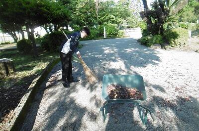 【校長先生朝のルーティン。まずは、校門付近の掃除から。いつもありがとうございます。】