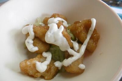 甘酢に漬け込んだお肉にタルタルソースがとけこみ・・