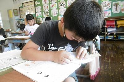 【素晴らしい姿勢で算数の学習をしているのは2年生です!】