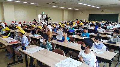 【入所式の様子・・・。県内いろいろな学校から5年生が集まってきています。そんな中・・・】