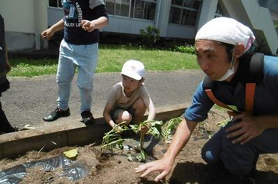 【やさし~く土をかけていた子どもたち・・・。とっても上手に植えることができましたね!】
