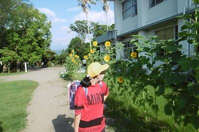 【ひまわりです!もう、私の身長をゆうに超え、2m近くあるのではないでしょうか。】